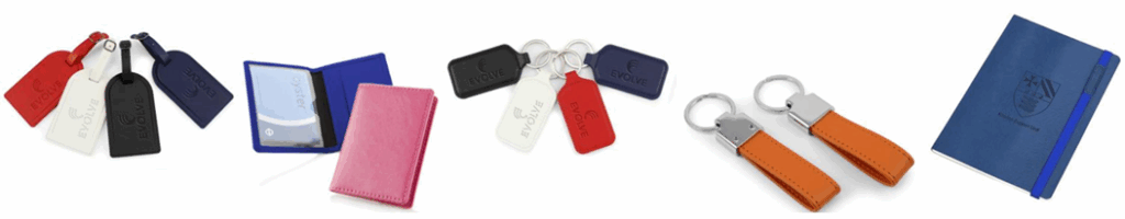 Vegan leather is now widely used for items like credit card case, key fobs, coasters, luggage tags, travel wallets, passport holders, notebooks, laptop sleeves, bookmarks, and conference folders.