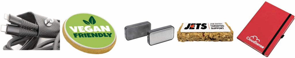 Other vegan assured products include vegan and gluten-free power delivery cables with brandable vegan leather bind, to keep the cable tidy and logo visible; shortbread biscuits topped with branded edible icing; wireless speaker crafted from aluminium with a vegan suede sleek stylish finish; vegan and gluten-free freshly baked branded oaty bars topped with a printed topper; notebooks made from up to 40% grass fibre onto a recycled cardboard. Recycled rPET covered elastic pen loop with recycled paper pages acid and chlorine free, free of heavy metals, recyclable, vegan and compostable.